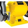 INCLUYE • Esmeril de banco STGB3715-B2C STANLEY • Potencia: 373W (1/2 HP) • Velocidad sin carga: 3450 (RPM) • Diámetro de disco: 6” (152mm) • Discos: Pulir y alambre • Cable: 1 metro • 2 discos de 6” grano grueso y medio CARACTERÍSTICAS • Base de acero robusto con monturas de goma